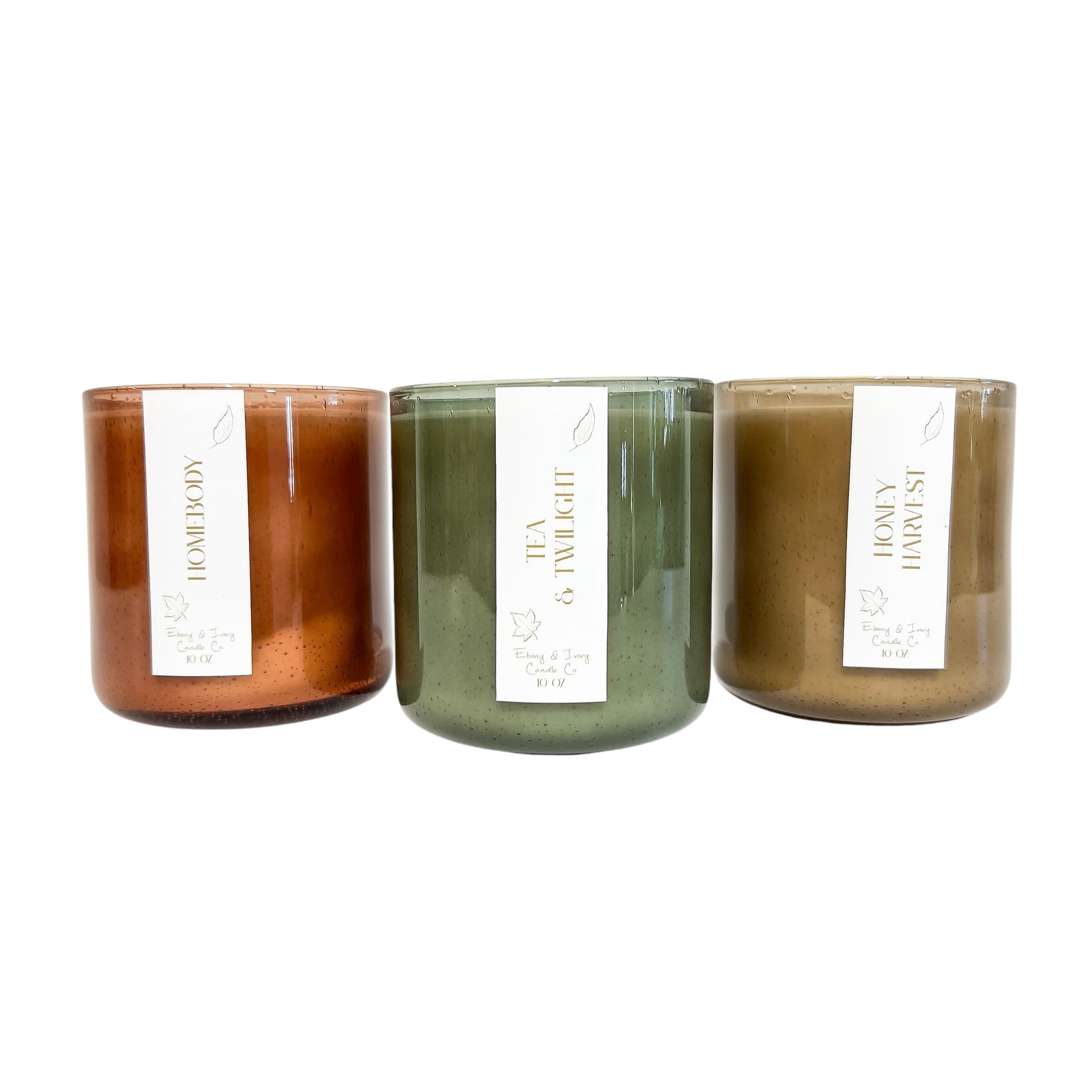 Introducing the Autumn Collection...a trio of limited-edition candles poured into stunning coloured bubble glass jars, designed to capture the beauty, coziness, and richness of the season.