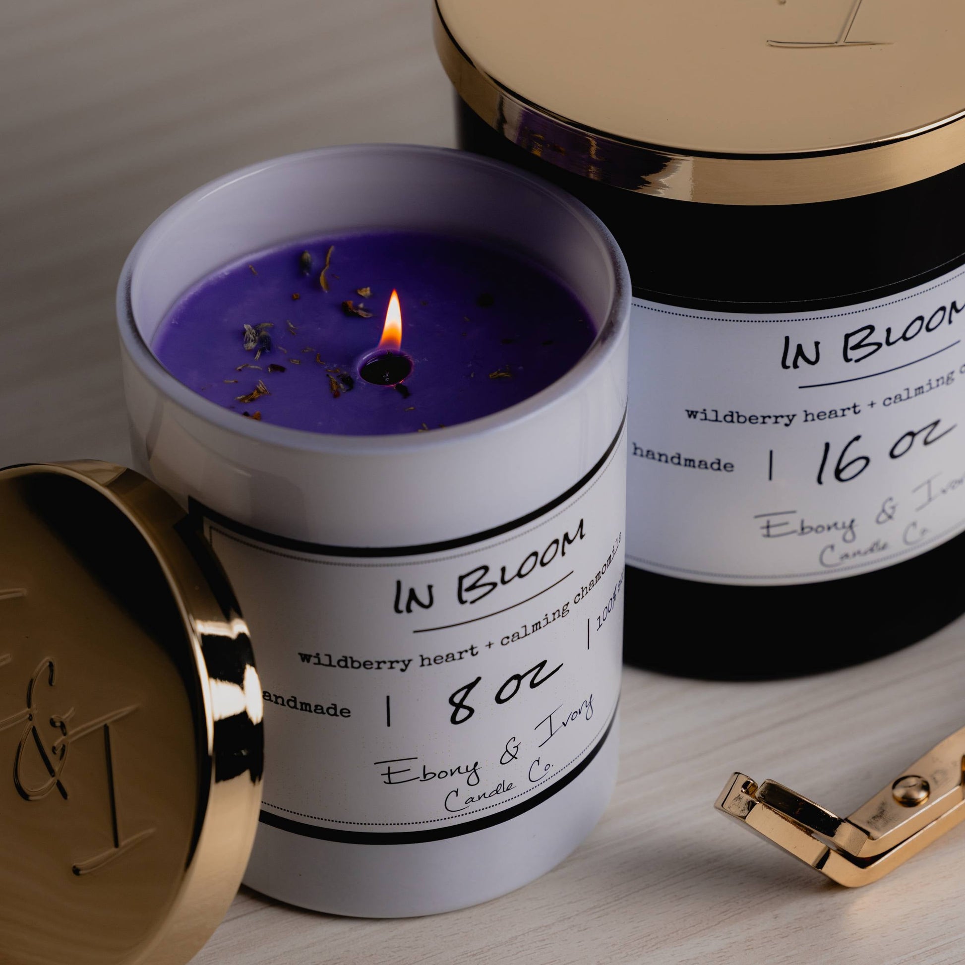 Each hand-poured candle is dusted with real chamomile blossoms and tinted with soft lavender-purple wax, making it just as stunning to look at as it is to smell. Itās a full sensory experience, soulful, serene, and slightly rebellious.